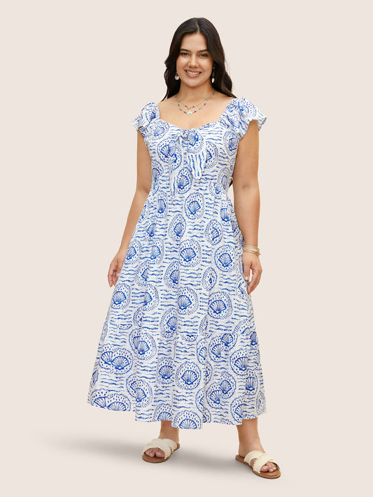 Marine Elements Ruffles Tie Knot Maxi Dress