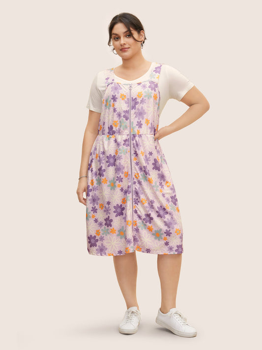 Slim Fit Butterfly Orchid Adjustable Straps Dress