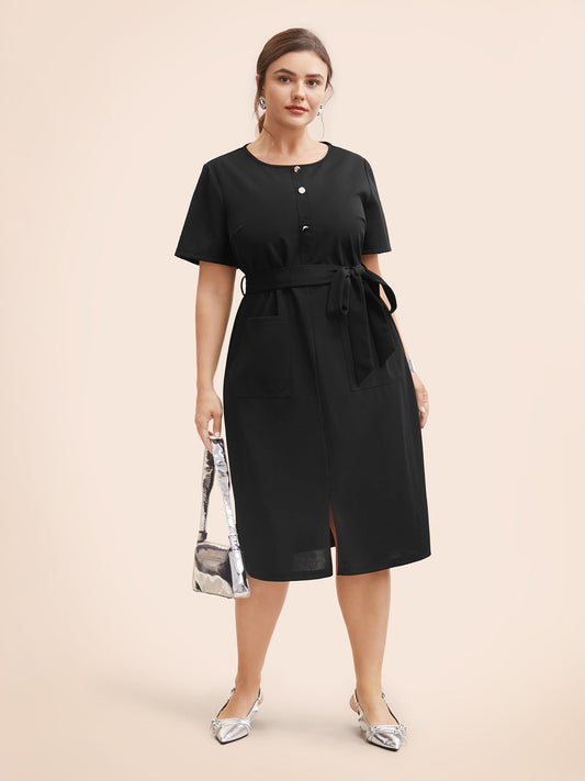 Solid Pleated Ruffle Sleeve Wrap Hem Dress