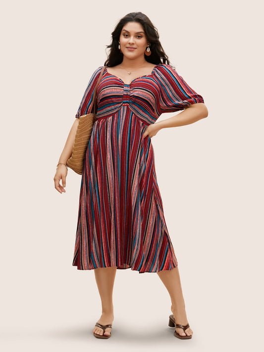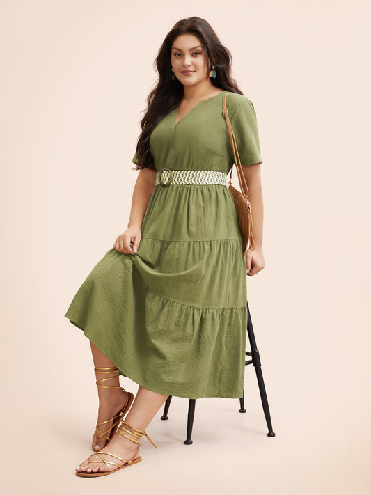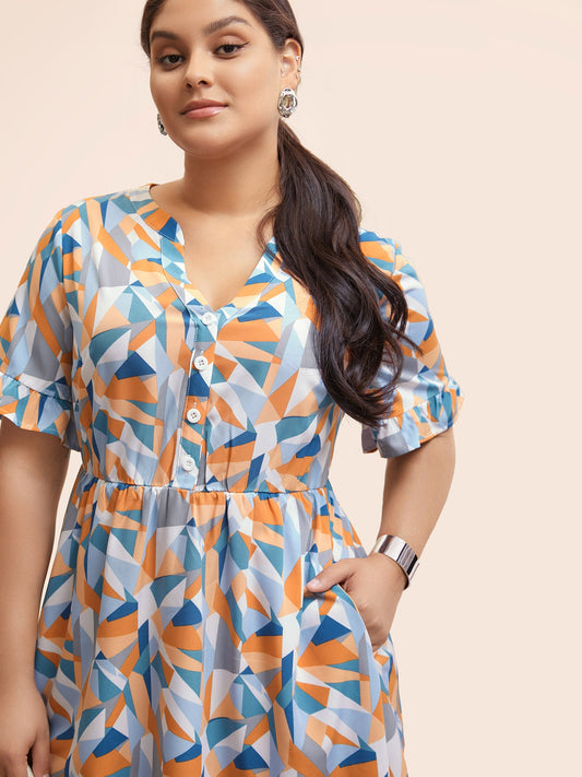 Colorblock Contrast Notched Ruffle Sleeve Dress