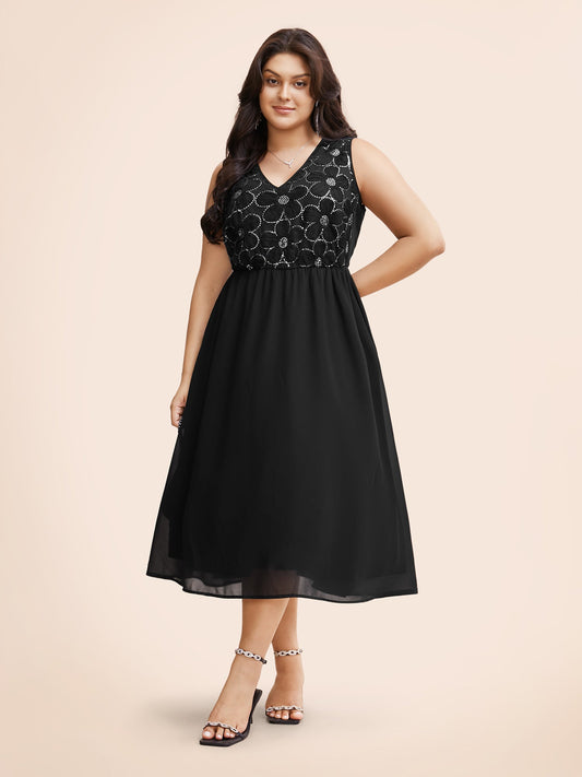 Round Neck Lace Patchwork Ruffle Sleeve Dress
