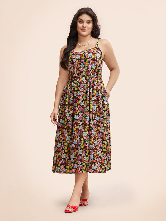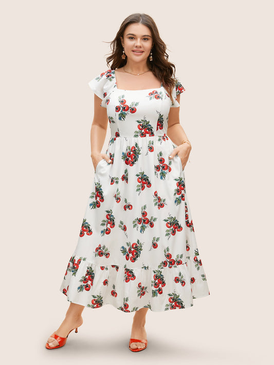 Tomato Print Square Neck Ruffle Cap Sleeve Dress