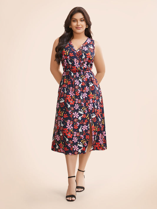 Overlap Collar Bandana Patchwork Split Hem Swim Dress