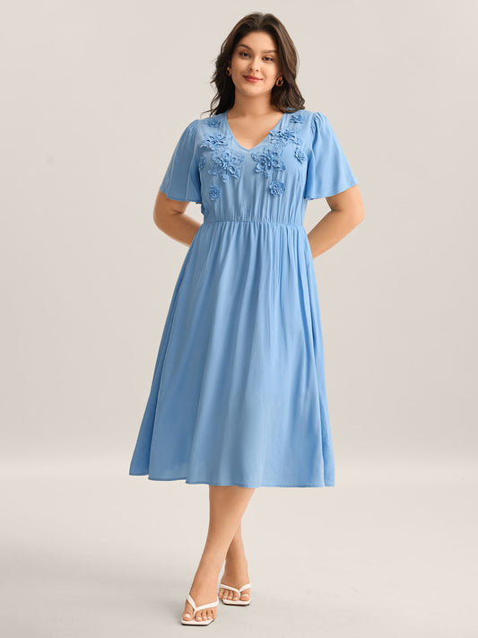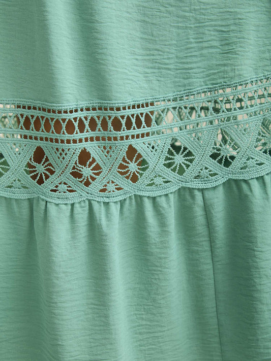 Lace Cut-Out Lotus Leaf Sleeve Midi Dress