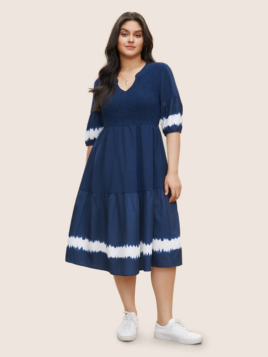 SAVE 60%Tie Dye Shirred Pocket Notched Dress