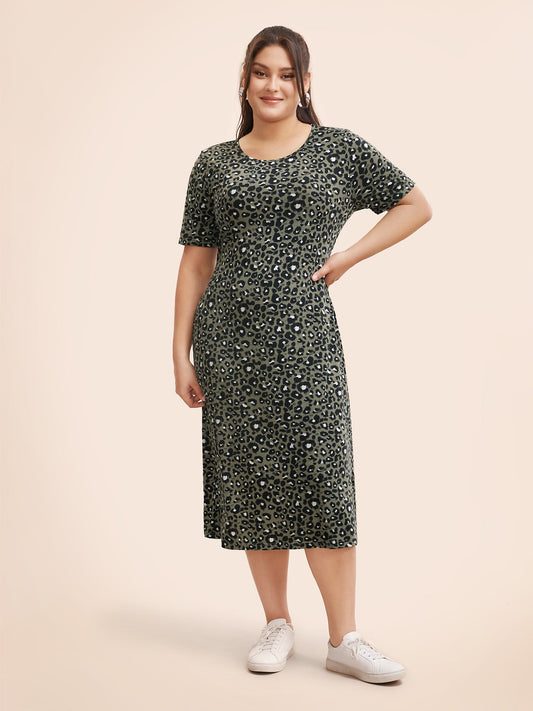 SAVE 50%Round Neck Leopard Print Midi Dress