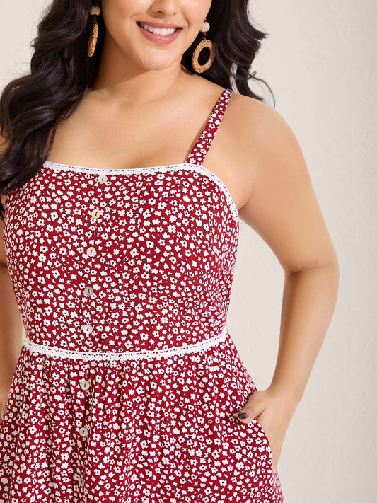 Ditsy Floral Flutter Trim Pocket Shirred Dress