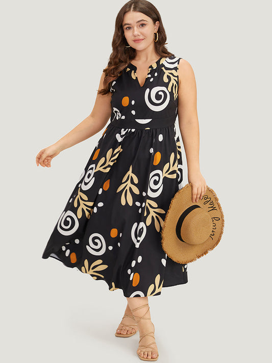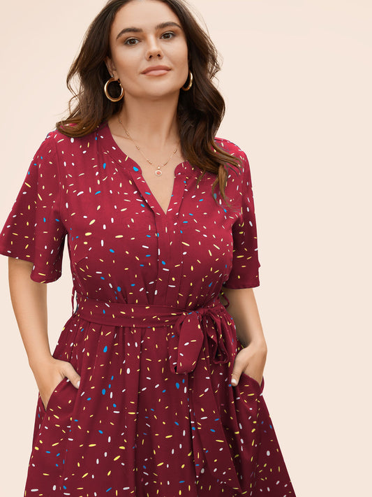 SAVE 50%Split Neck Confetti Print Midi Dress