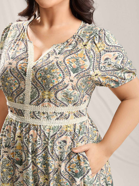 SAVE 22%Ornate Print Lace Neck Midi Dress