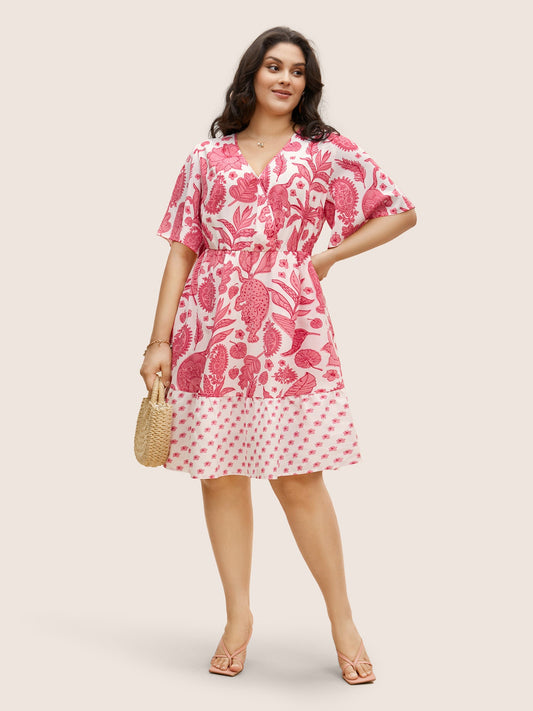 Boho Print Contrast Gathered Pocket Ruffles Dress