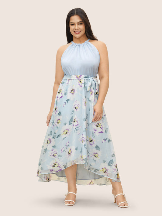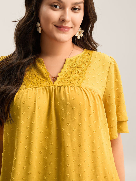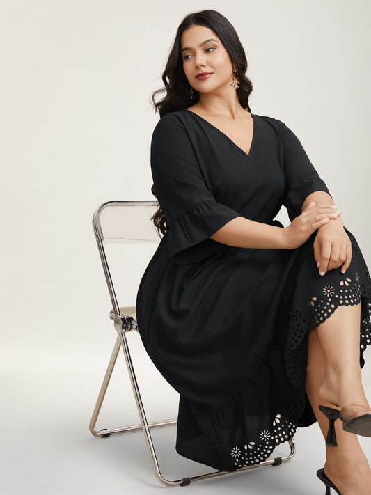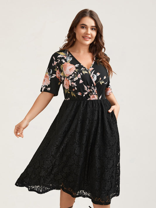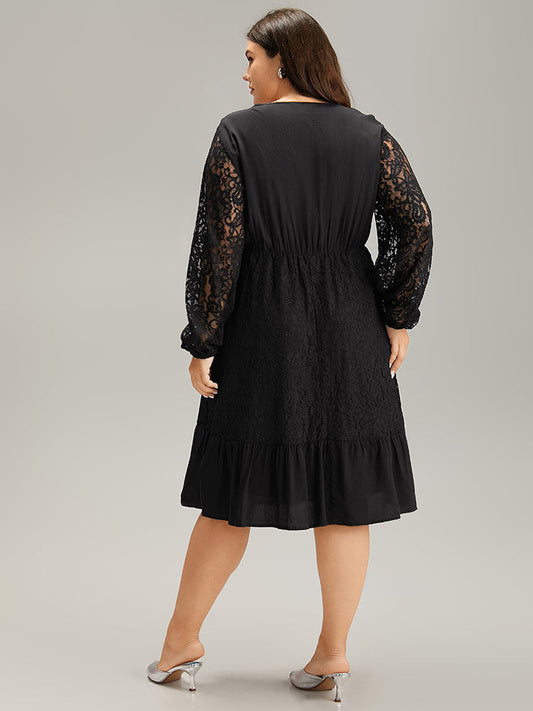 SAVE 60%Lace Panel Mesh Flutter Hem Dress