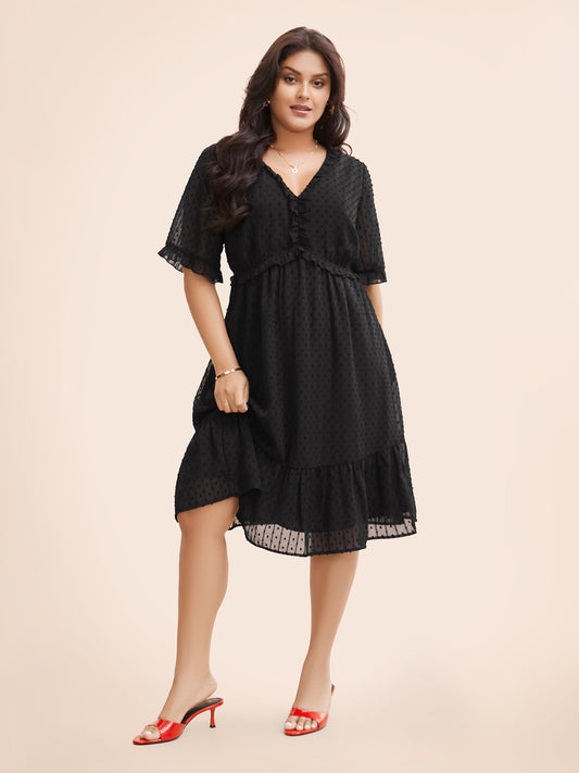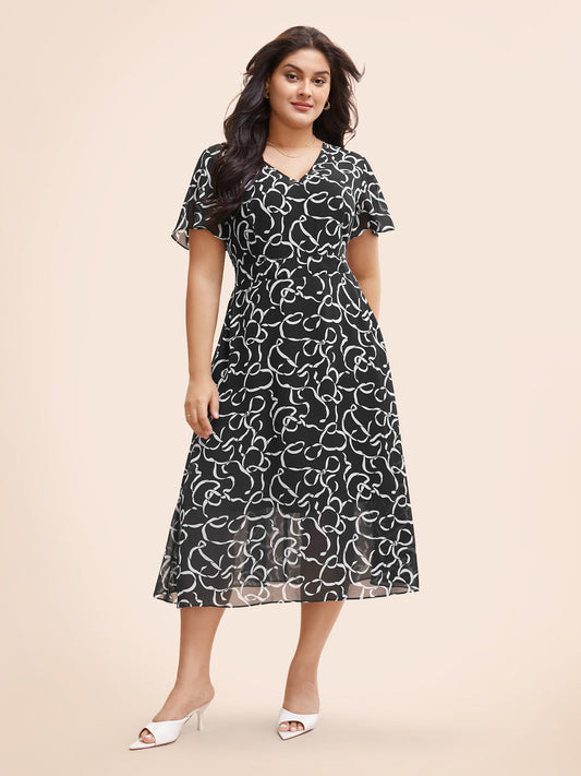 Chiffon Bowknot Print Ruffle Sleeve Midi Dress