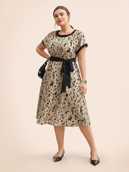 Leopard Print Contrast Trim Dolman Sleeve Dress