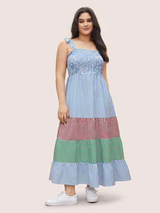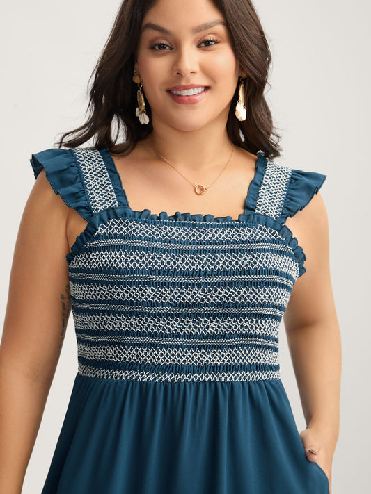 Fancy Shirred Flutter Tiered Pockets Midi Dress