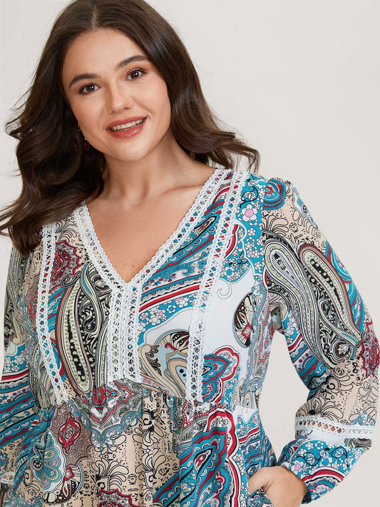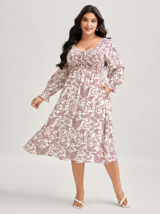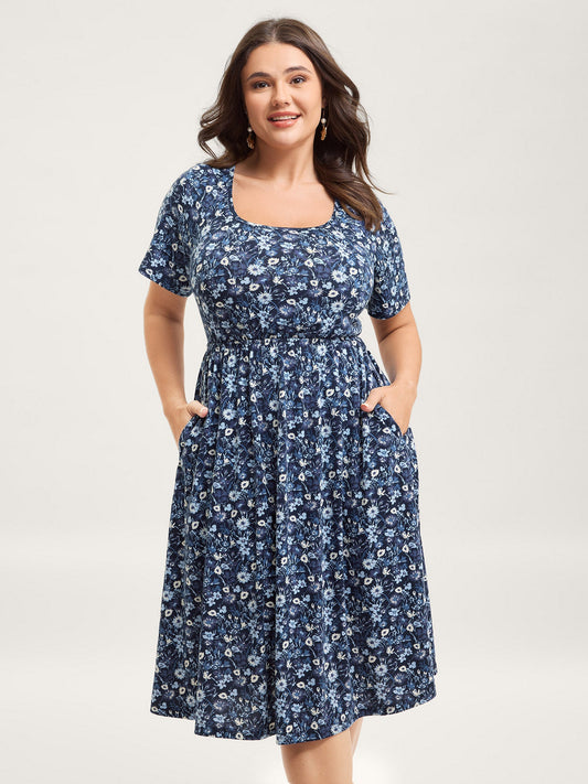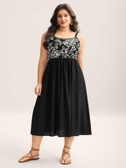 Ocean Print Adjustable Straps Pockets Midi Dress