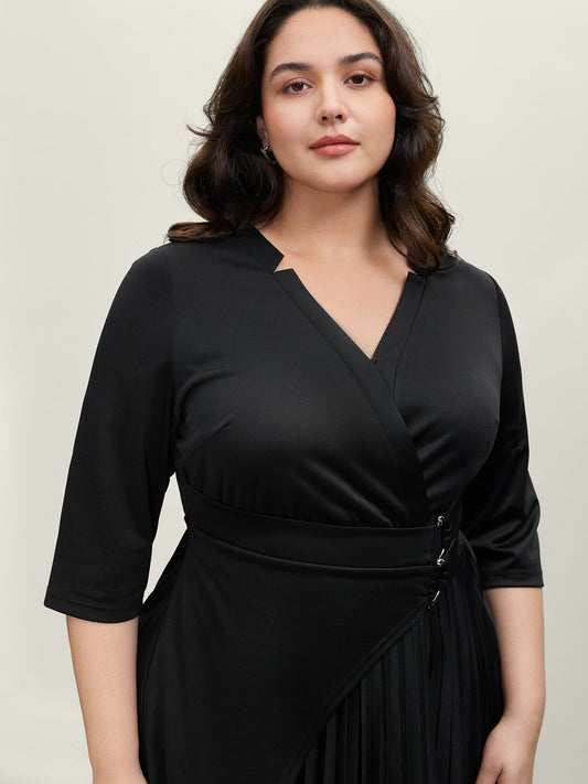 Velvety Thick Fabric Patch Pocket Midi Dress