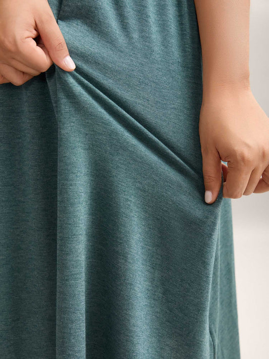 Stretchy Flutter Sleeve Pleated Midi Dress