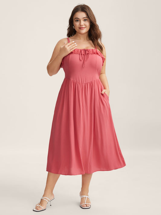 Bandana Knotted Pocket Ruffle Hem Empire Waist Cami Dress
