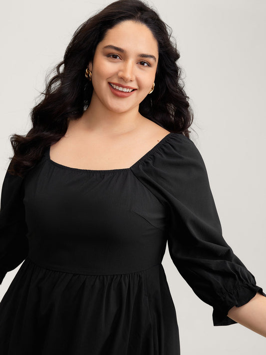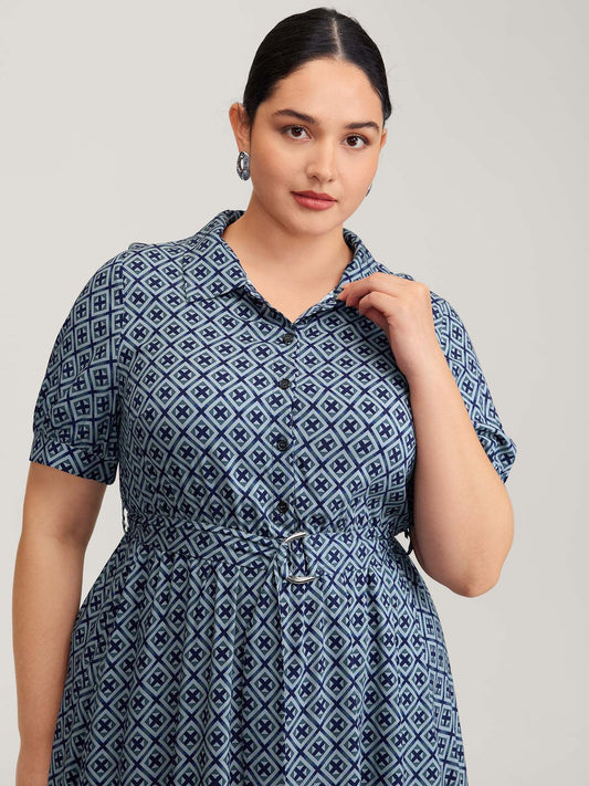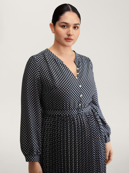 Polka Dots Shirred Drawstring Neck Midi Dress
