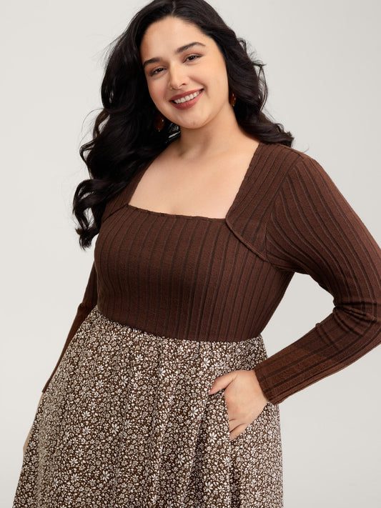 Floral Shirred Pockets Stretchy Waist Midi Dress