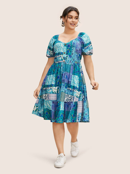 Patchwork Boho Print Raglan Sleeve Midi Dress
