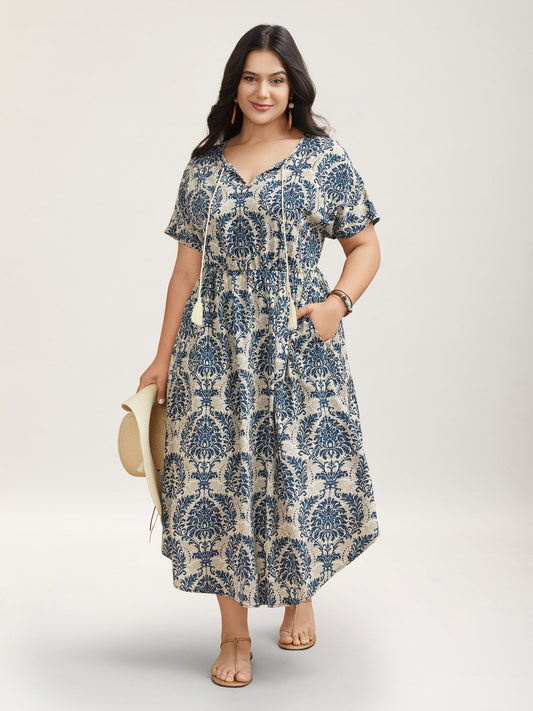 Ornate Print Curvy Hem Tied Maxi Dress