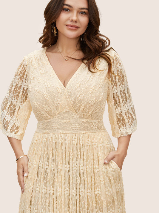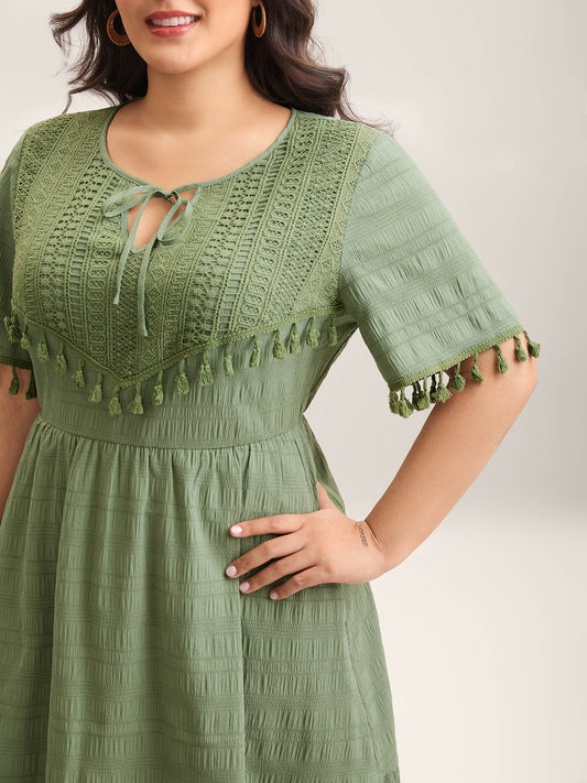 Lace Neck-Tie Pockets Tiered Midi Dress