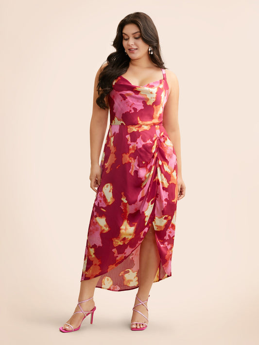 Floral Print Contrast Cami Midi Dress