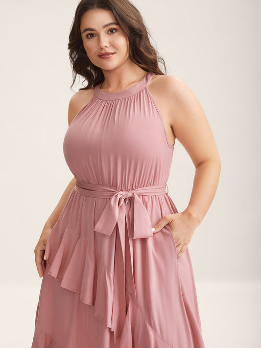 SAVE 60%Ruffled Halter Neck Solid Midi Dress