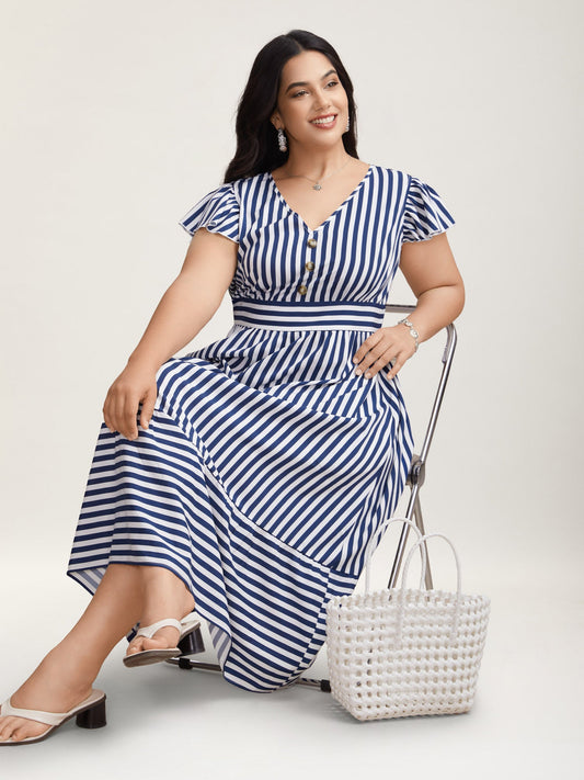 Plaid Print Flutter Sleeve Pockets Midi Dress