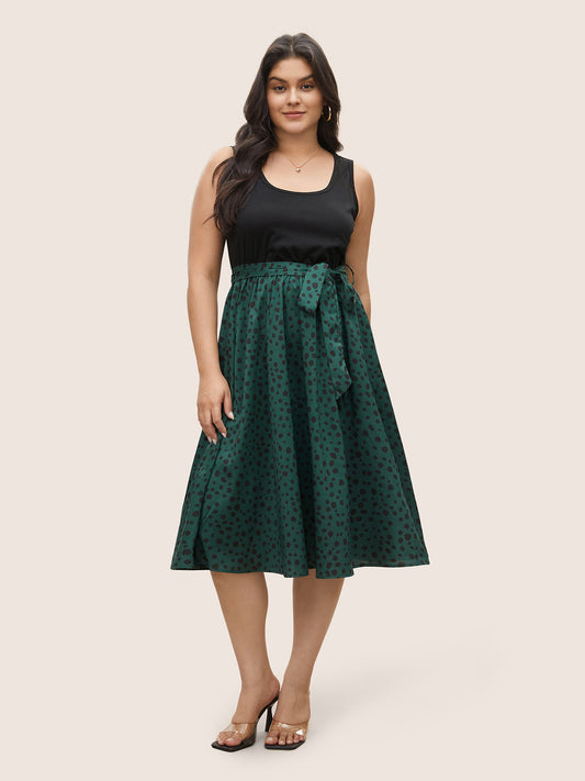Geometric Patchwork Cut Out Adjustable Straps Dress
