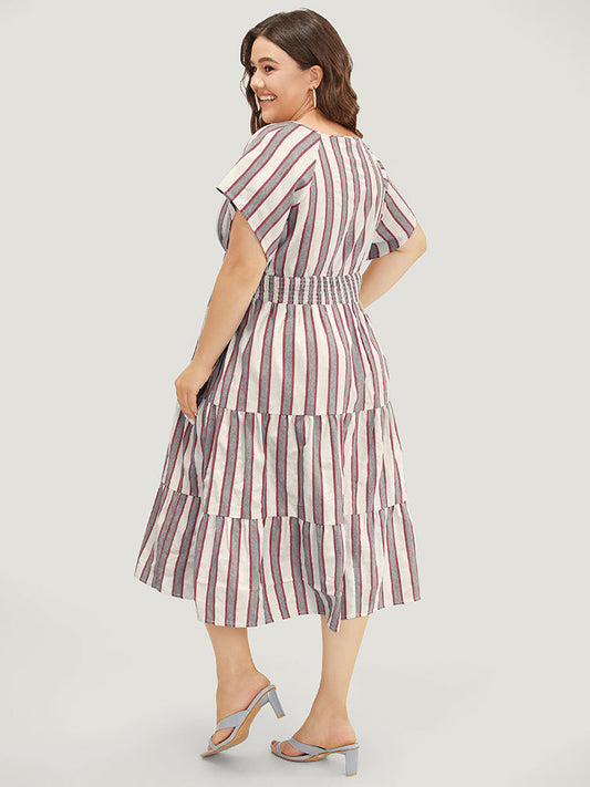 Striped Contrast Pocket Shirred Flutter Tiered Dress