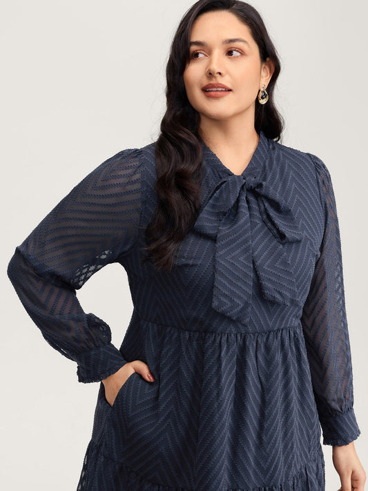 Textured Bowknot Flowy-Fit Midi Dress