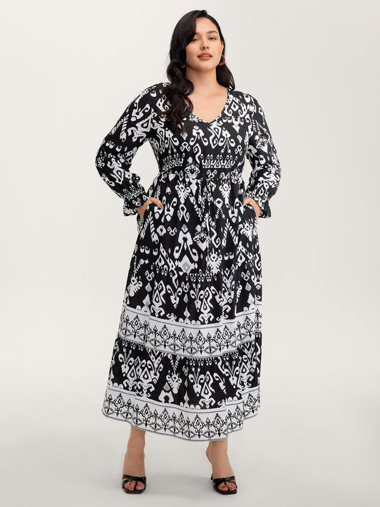 SAVE 60%Stretchy Waist Boho Print Midi Dress