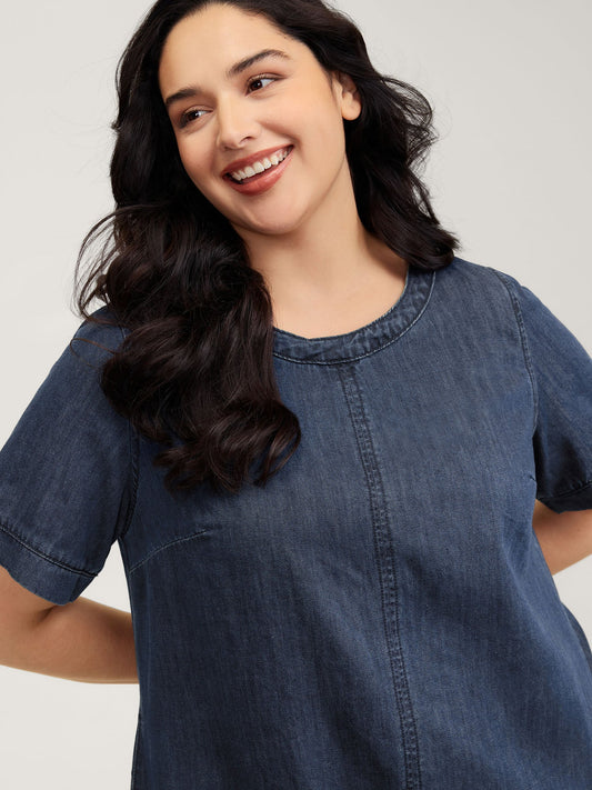 Denim Adjustable Overall Straps Pockets Midi Dress