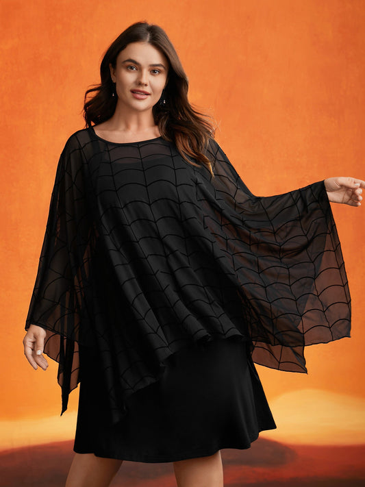 Lace Trim Stitch Sheer Mesh Sleep Dress
