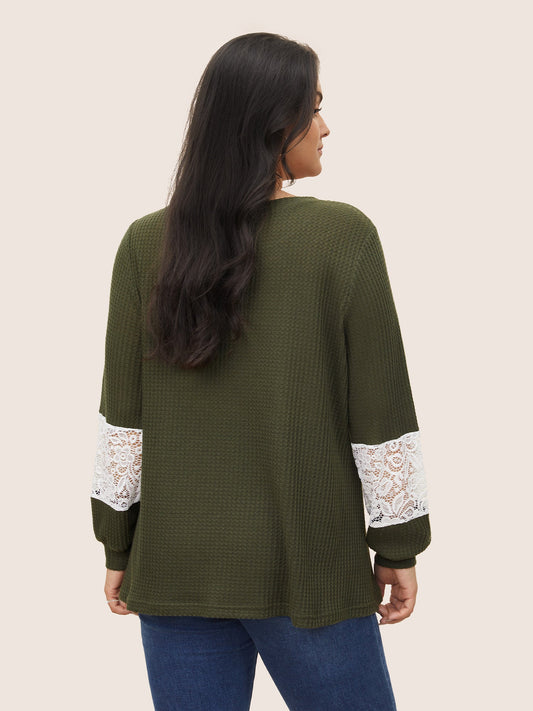 Waffle Knit Contrast Lace Patchwork T-shirt