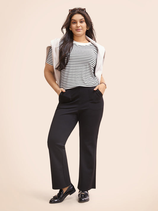 Striped Crew Neck Rib Knit T-shirt