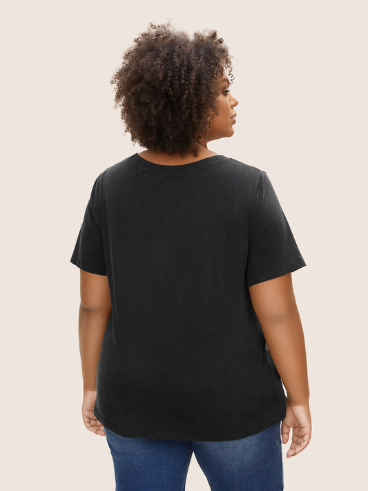 Crew Neck Positive Slogan Letter Print T-shirt