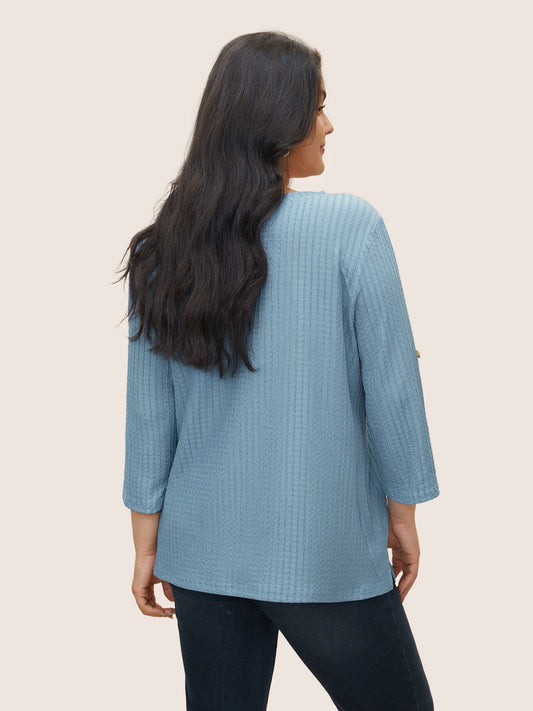 Plain Textured Patched Pocket Tab Sleeve T-shirt