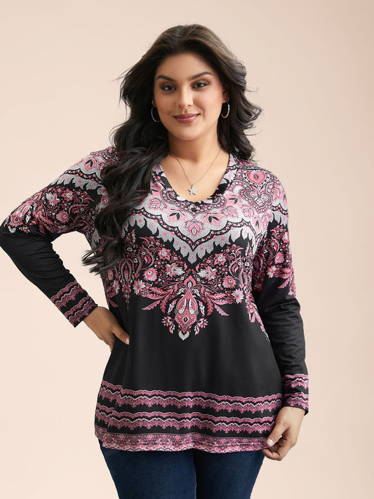 Stretchy Boho Print Full Sleeve T-Shirt