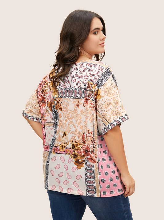 Round Neck Boho Print Patchwork T-shirt