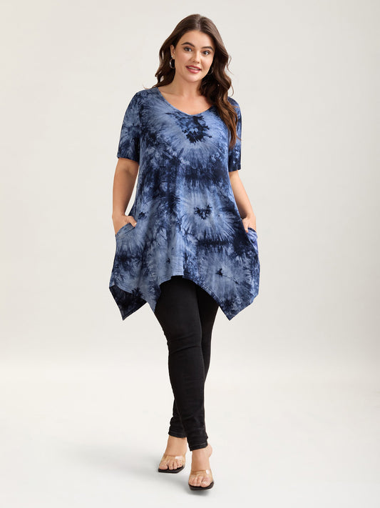 • Tie-Dye Stretchy Asymmetrical Hem T-Shirt