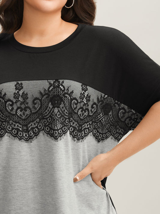 • Lace Design Color Contrast T-Shirt