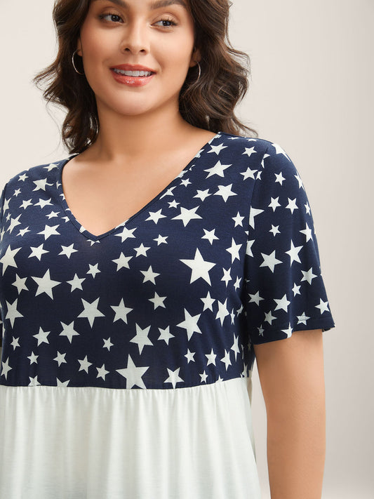 • Star Print Color Contrast Tiered T-Shirt