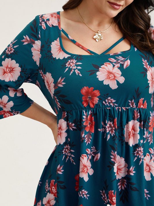 • Floral Print Neck Cut-Out Babydoll Top