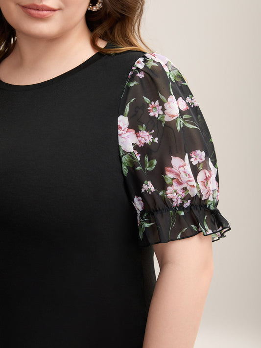 Floral Position Print Half-Sleeve T-Shirt