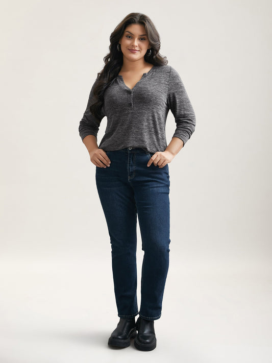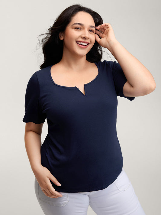Half-Zipper Neckline Bodycon Fit T-Shirt
