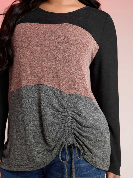 Shirred Cuff Sleeve Round Neck T-Shirt
