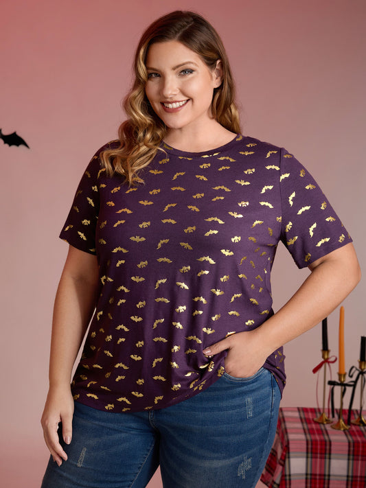 Shimmery Gold Bat Print Crewneck T-Shirt